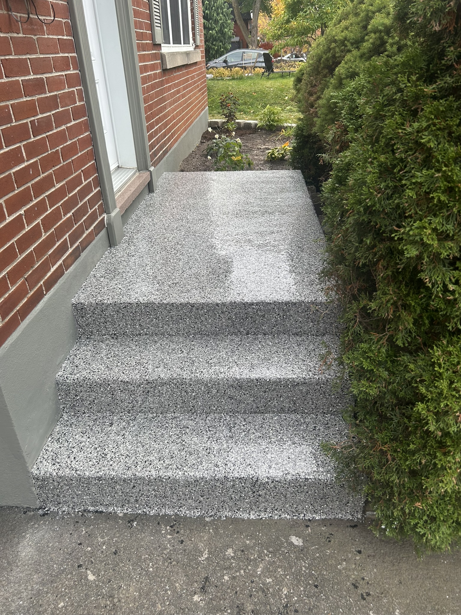 La réfection de béton peut être jumeler avec une finition en époxy qui triplera la durée de vie du béton tout en offrant une beauté rare.